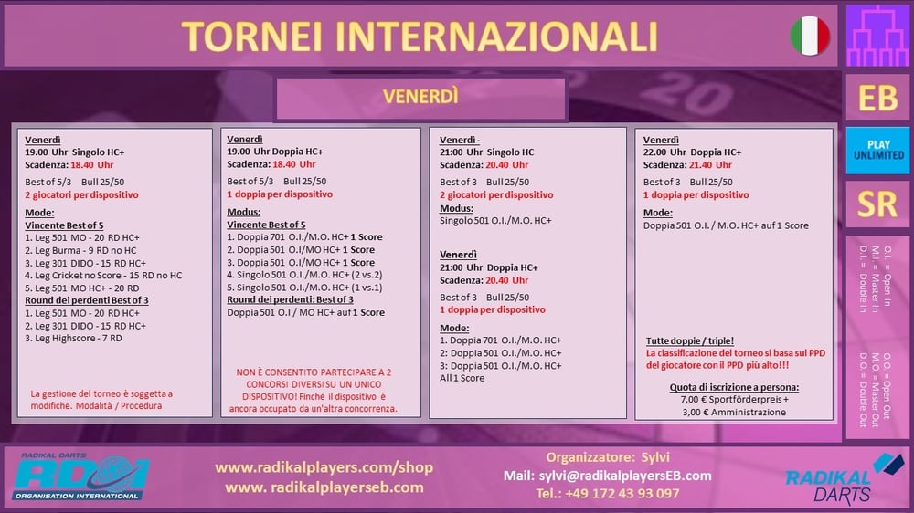 Live Turniere Freitag / Friday KW 33